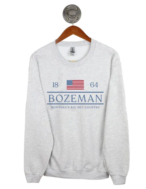 Show your love for Bozeman, Montana in this patriotic crewneck sweatshirt!