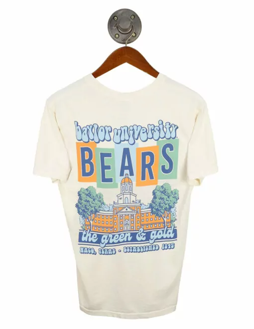 Groovy and spirited! We are loving this short sleeve Comfort Colors t-shirt. The groovy Baylor Bears design makes this shirt and must-have in Waco, Texas!