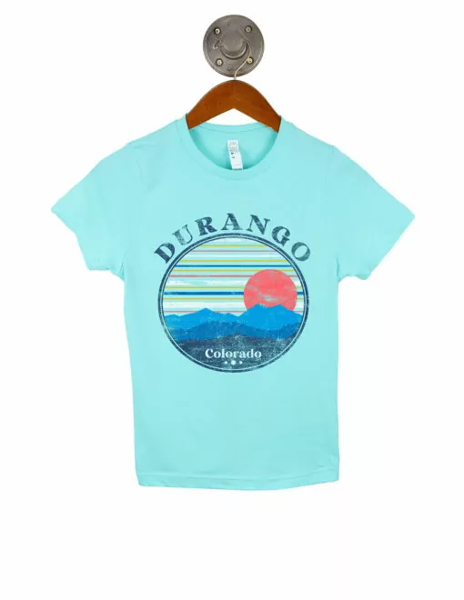 Let your toddler show off their recent travels with this light blue short sleeve Durango, Colorado t-shirt!