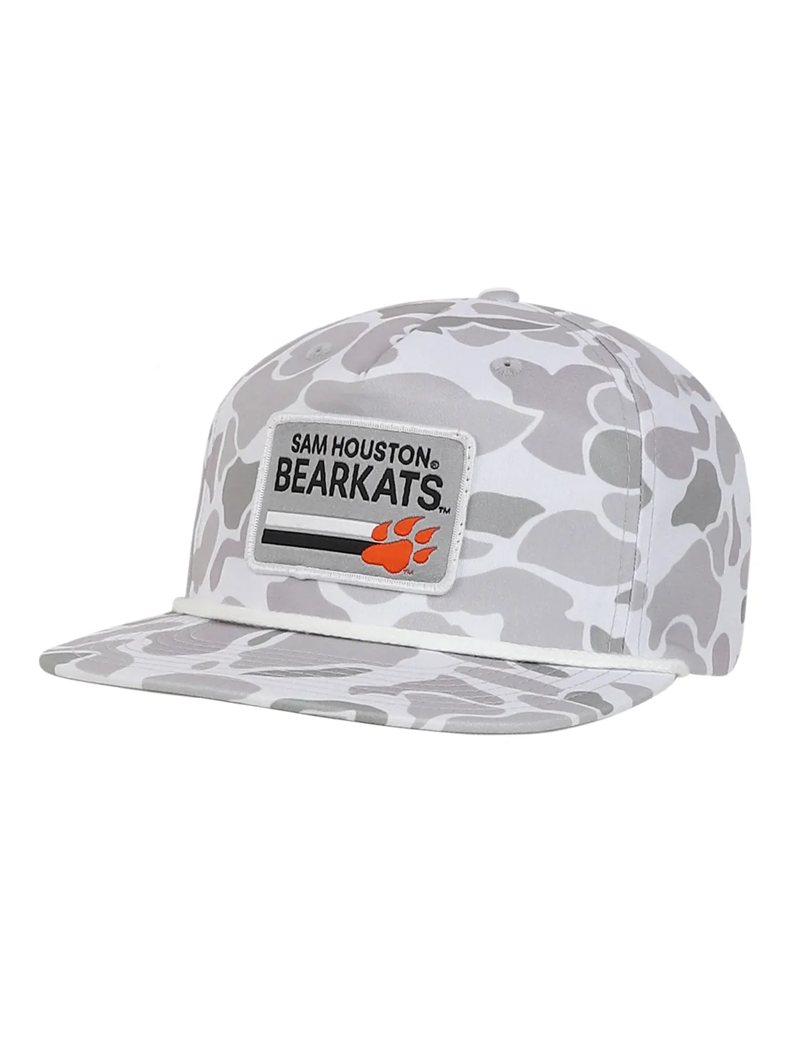 This camo hat with rope detail features a classic Sam Houston Bearkats logo patch- perfect for showing off your SHSU pride!