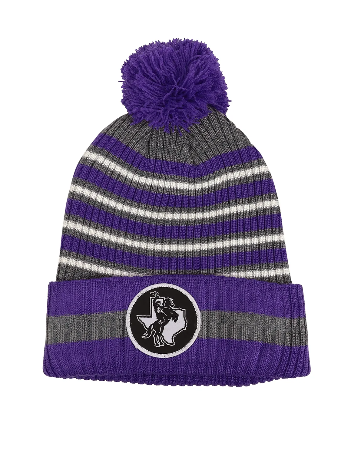 Show your Texan pride and keep warm in classic purple with this Tarleton State University beanie. Designed for both comfort and school spirit, this hat features a bold pom pom top and a rolled cuff that adds a timeless, cozy touch.