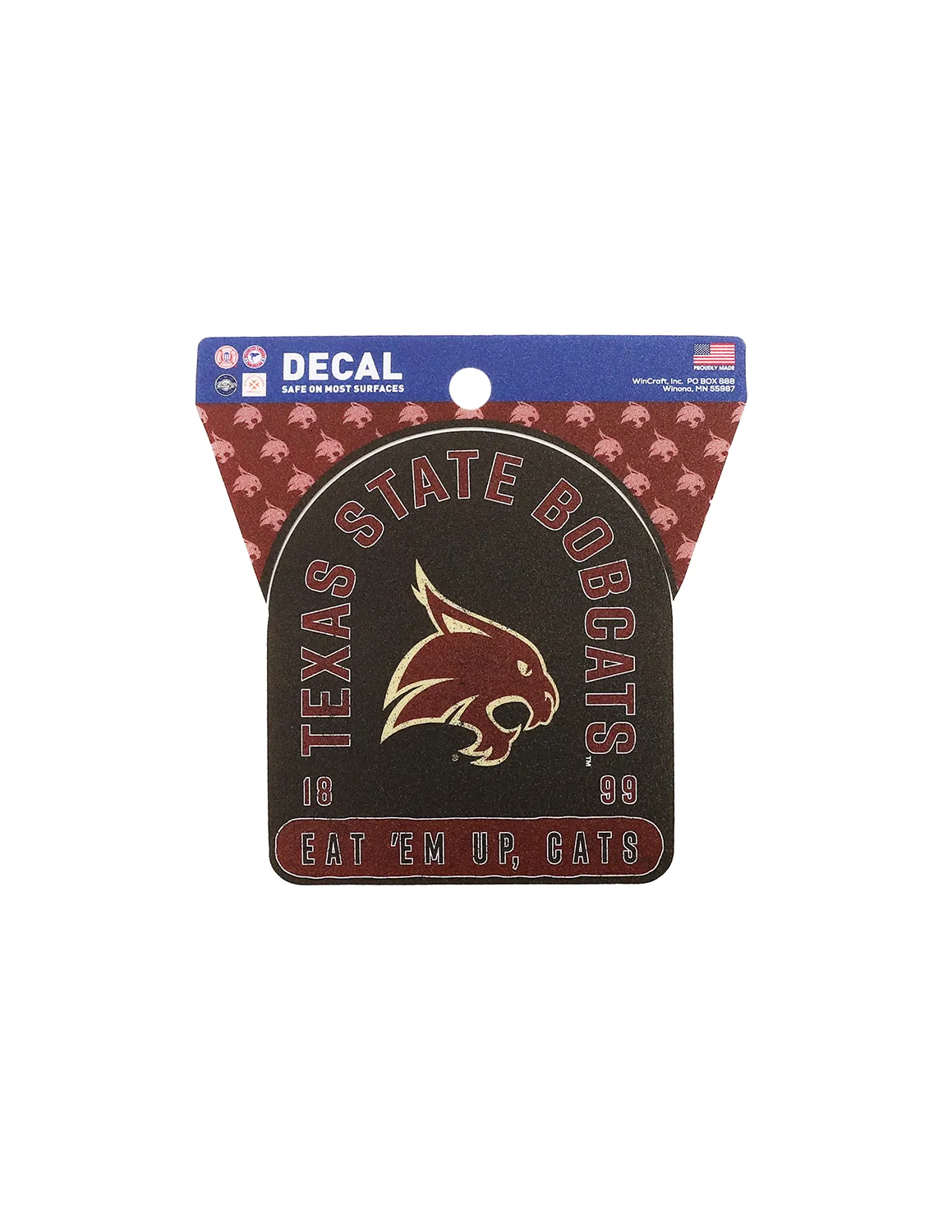 Show your Bobcat pride with this Texas State University decal. Featuring the fierce Bobcat logo with “Eat ’Em Up Cats” text, this 3″ x 4″ decal is made from thick, durable material that’s perfect for displaying your TXST spirit anywhere.