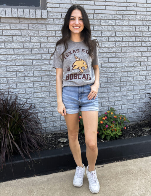 Bobcats love a simple vintage text tee! This short sleeve triblend tshirt is a simple basic for your Texas State wardrobe.