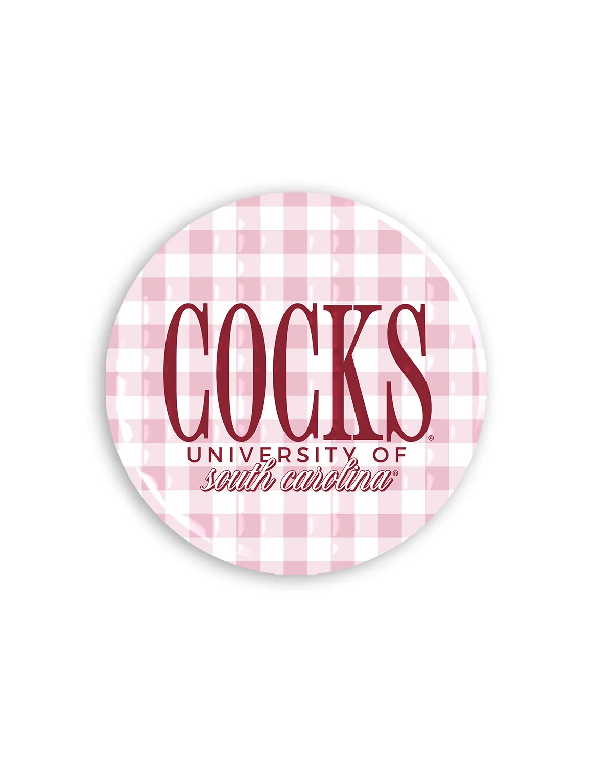 Perfect for tailgates, stadium stands, or showing off your Gamecock pride around town, this button is a must-have for every Carolina fan.