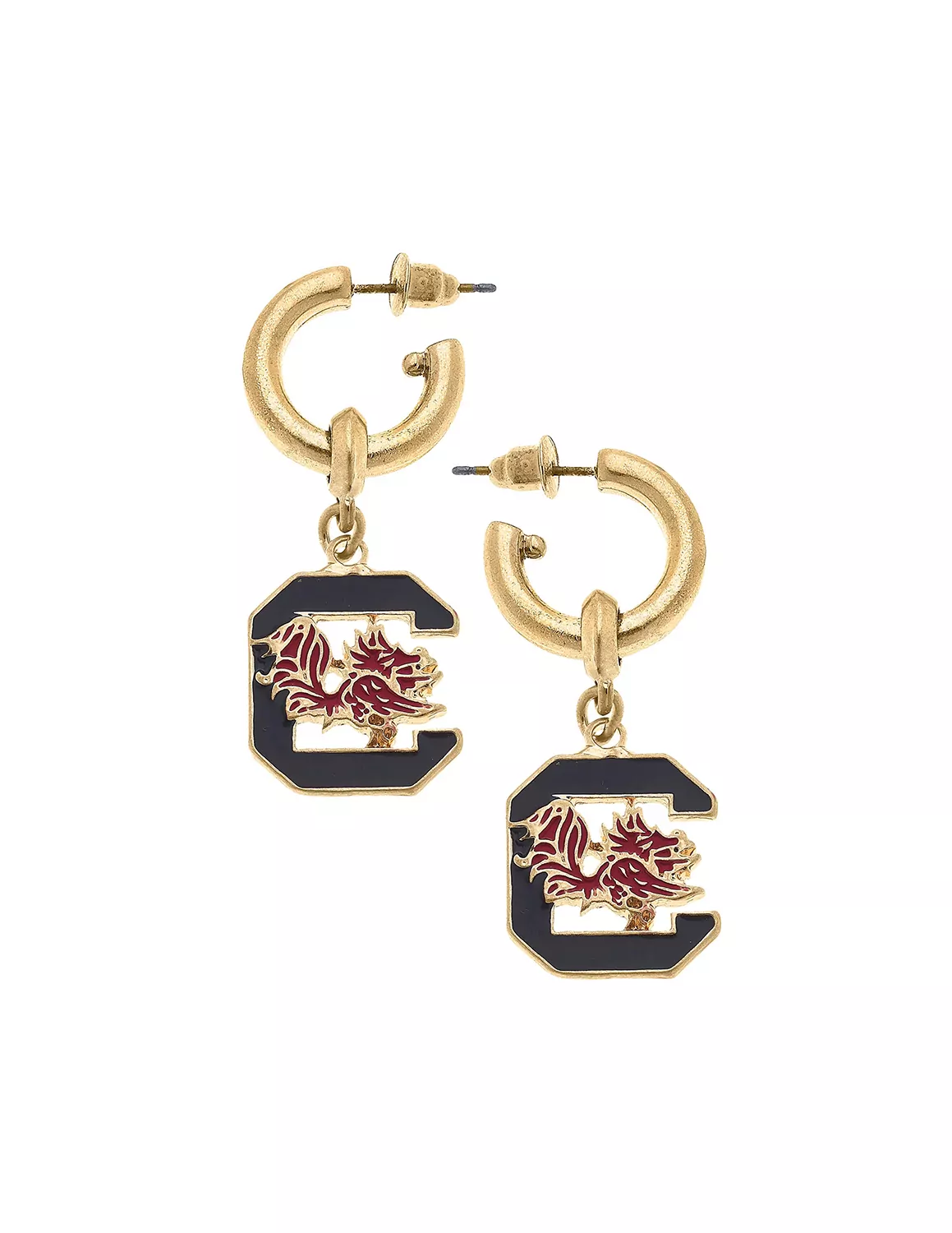 These pendant drop hoop earrings are the perfect piece to show off your school spirit! The charm features the University of South Carolina logo and makes the perfect gift for the Gamecocks fan in your life.