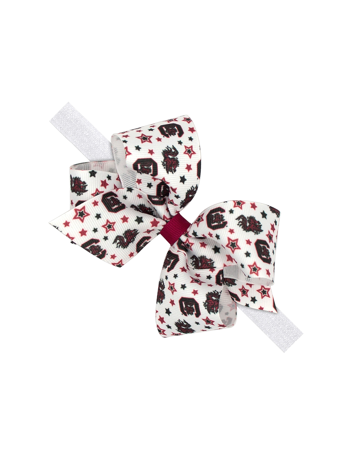 Show your team spirit by wearing this officially licensed South Carolina hair bow headband. This signature logo print grosgrain hair bow comes on a 5/8 inch soft, stretchy elastic band. Fits 3 months and up.