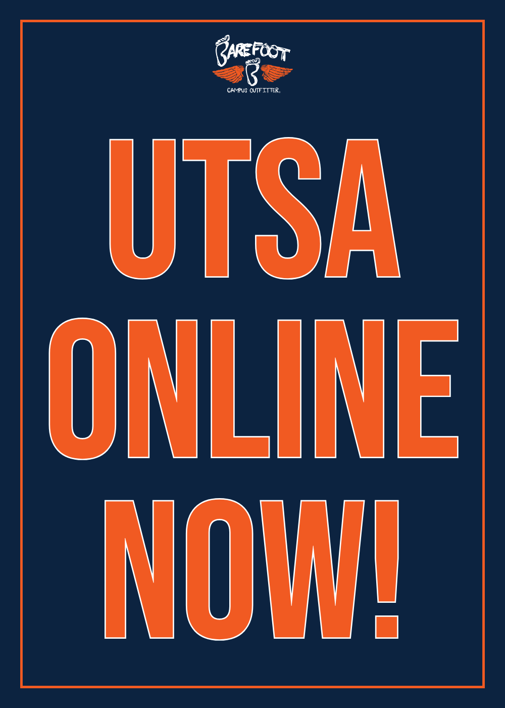Our UTSA online store is officially open, with our Barefoot storefront opening this April. Shop online now and get ready to experience UTSA spirit—Barefoot style—very soon.
