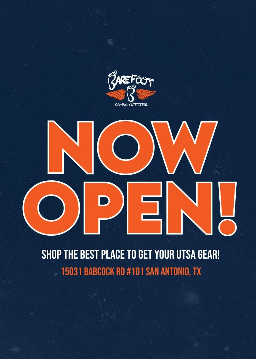Our UTSA store is officially open! Shop online and in-store and experience UTSA spirit—Barefoot style.